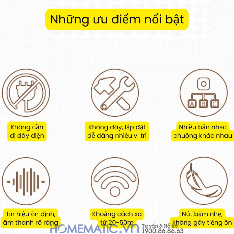 | Chức năng | Chuông bấm cửa, chuông cửa hàng, chuông văn phòng |