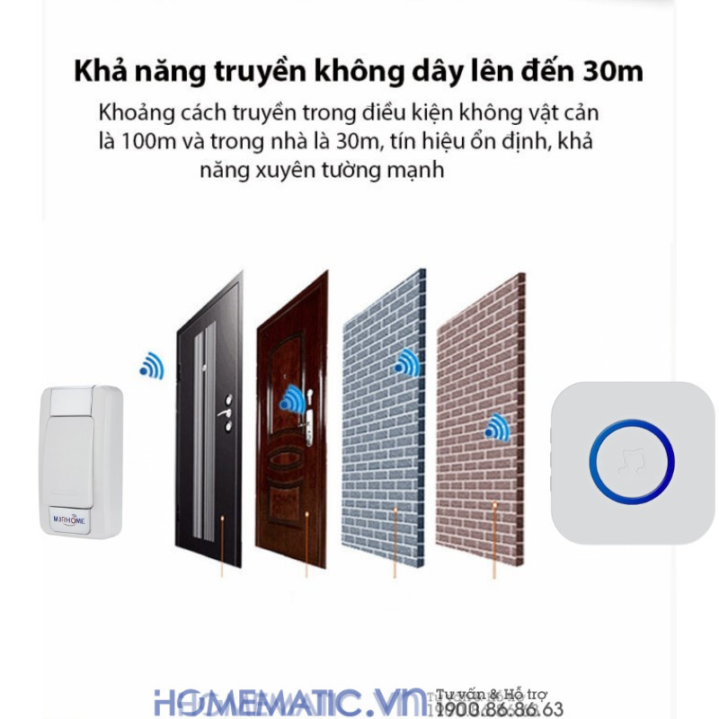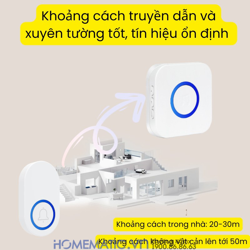 Phạm vi hoạt động rộng, phù hợp với mọi không gian: Dù bạn sống trong căn hộ chung cư hay nhà nhiều tầng, QX01 vẫn đáp ứng tốt với tầm xa kết nối từ 30-50m. Không lo tín hiệu gián đoạn, chuông luôn hoạt động ổn định, đảm bảo bạn không bỏ lỡ bất kỳ vị khách nào.